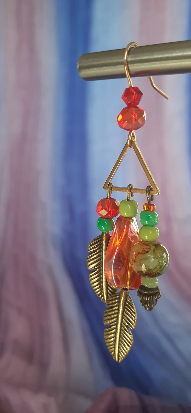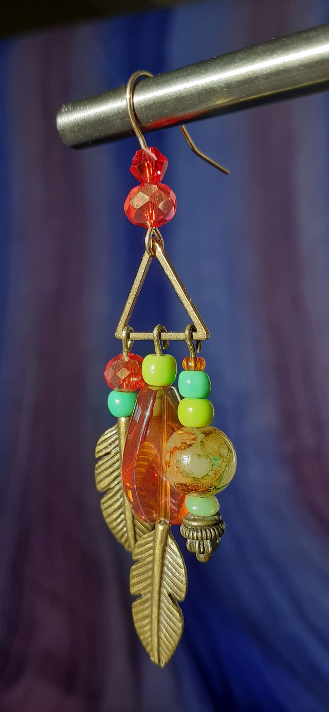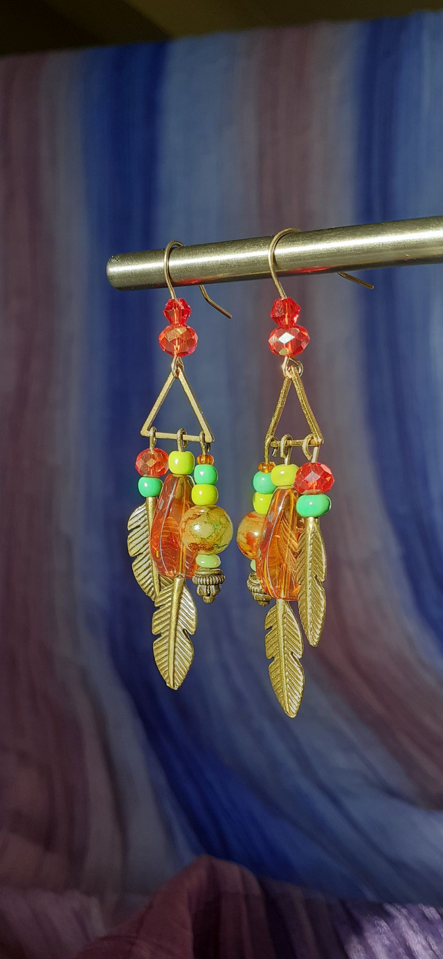 Apache Boucles d'oreilles pendantes orange & vert