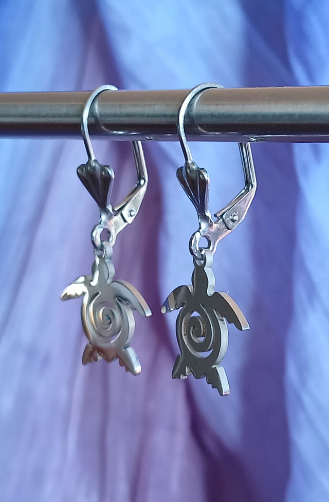Boucles d’oreilles pendantes. Motif ajouré Petite tortue.