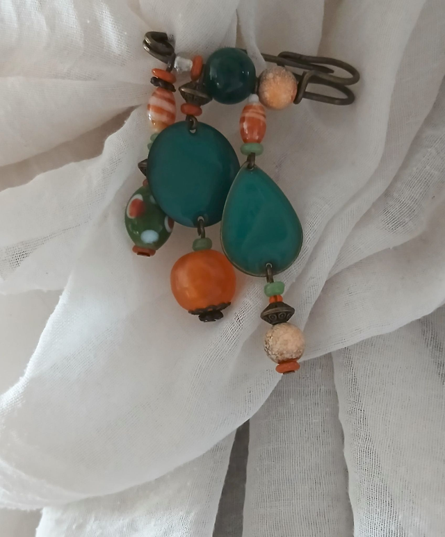 Broche à breloques orange et verte
